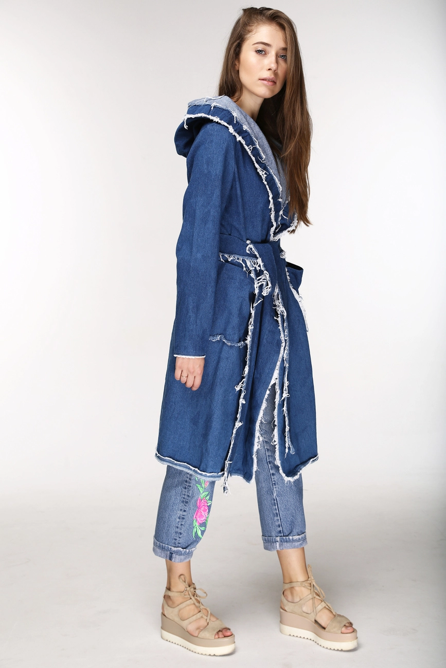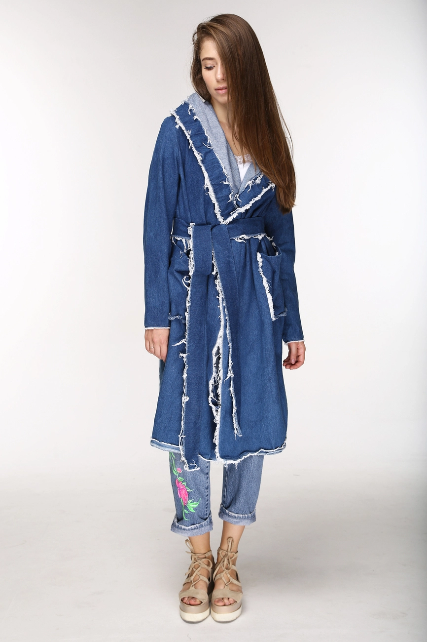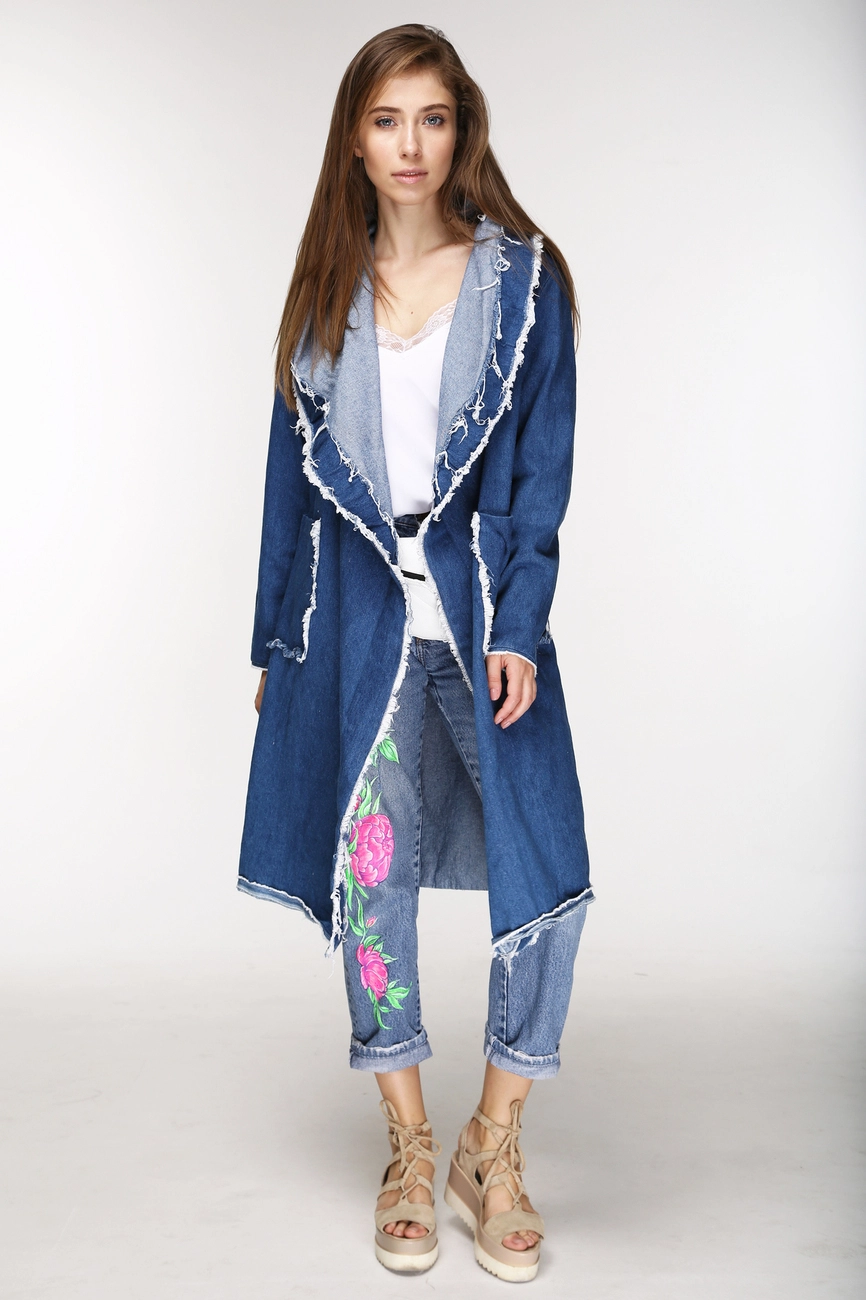 Пальто JEANS для стильной теплой осени и весны. Ты можешь носить его как накидку, или под пояс, что подчеркнет твою талию. Это пальто поможет тебе создать свободный и немного дерзкий образ. Само собой ты можешь носить его с джинсами, но не ограничивайся очевидным. Длинные и короткие юбки, платья-комбинации, брюки-кюлоты, это лишь маленький список, с чем можно его сочетать.