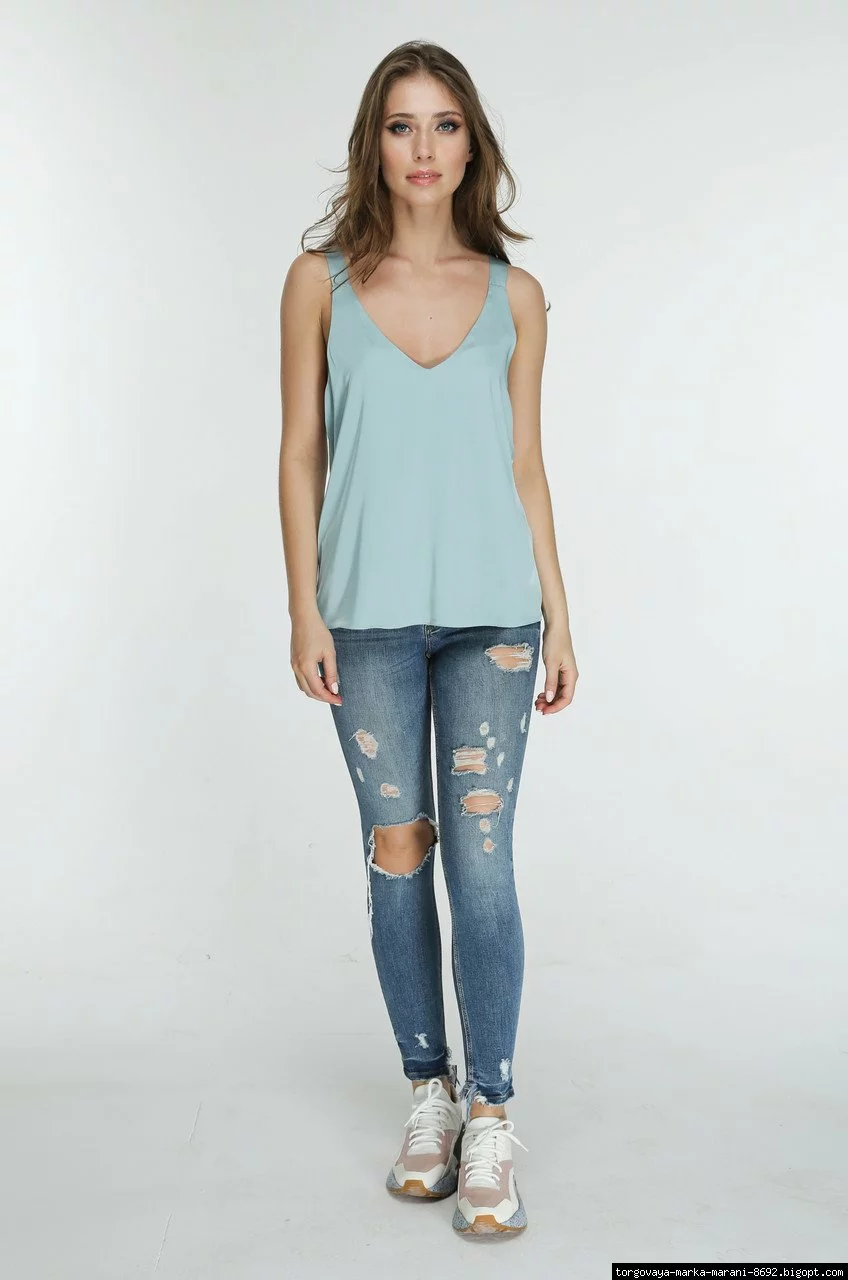 бедра, свободная к низу. Создана дизайнерская женская майка из