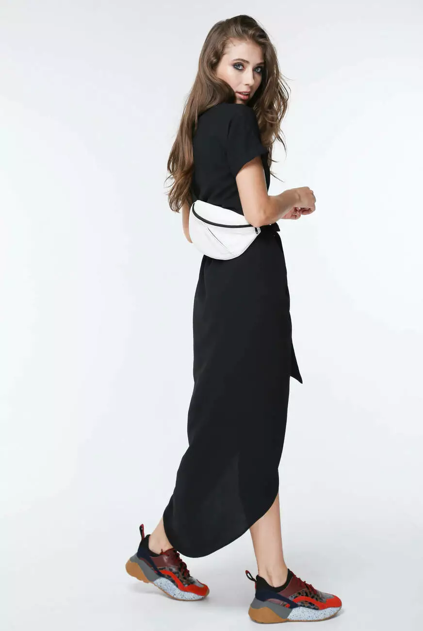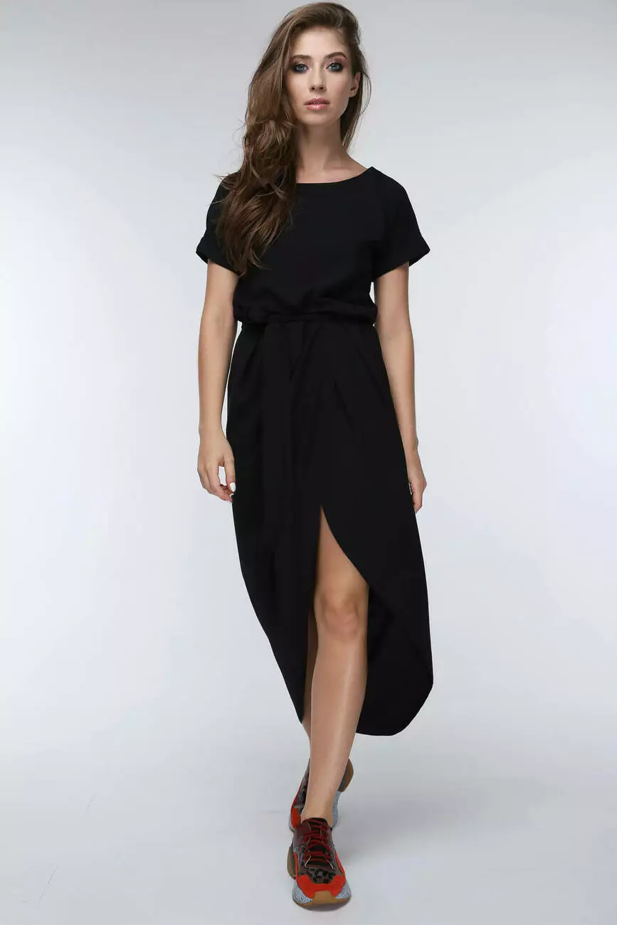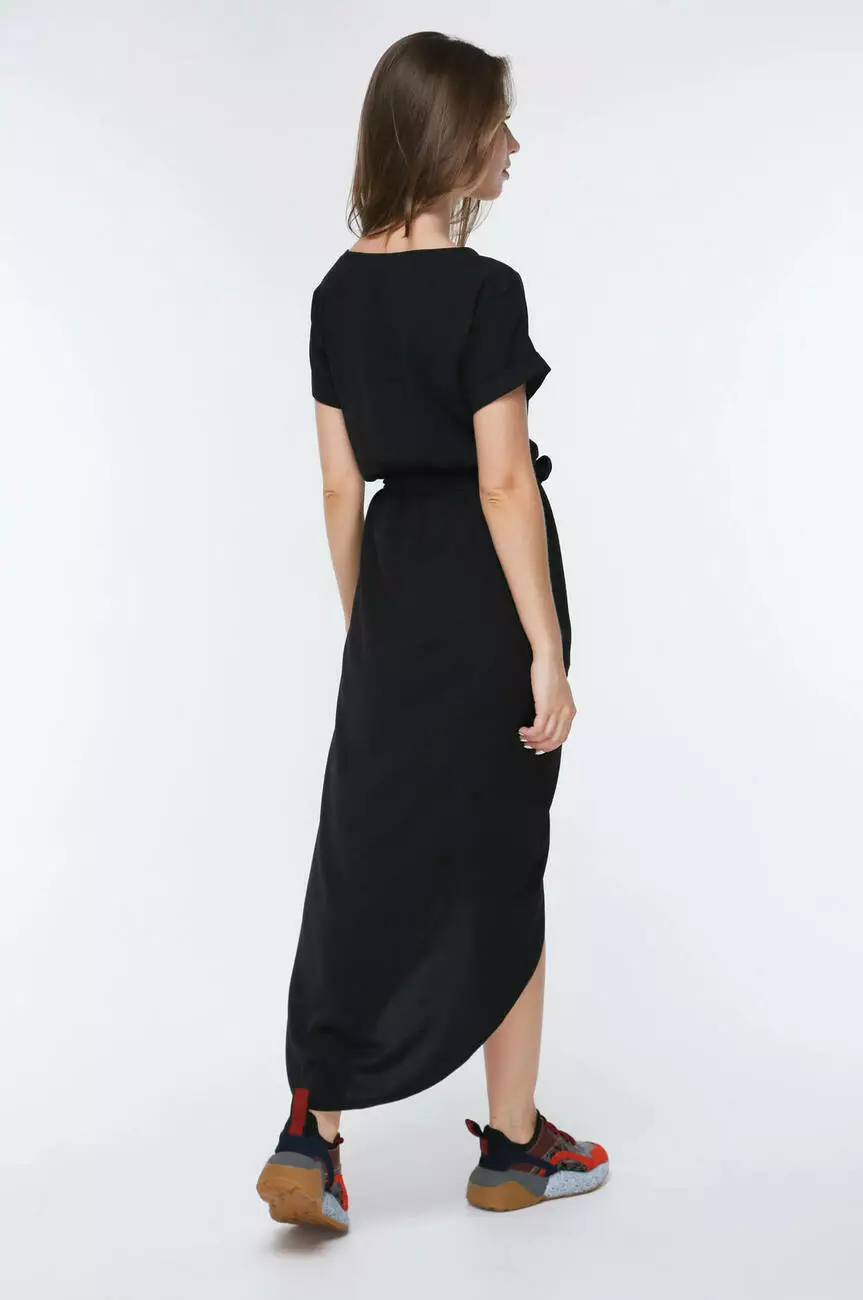 Платье KIRA сочетает в себе шик, деловой стиль и практичность. Верхняя часть выполнена, как футболка с коротким рукавом. Юбка асимметричная с удлиненной задней частью и с разрезом спереди. Пояс подчеркивает линию талии. Ты удивишься, как легко сможешь менять разные стили обуви. Высокий каблук, скромные и практичные лодочки и не менее практичные кроссовки и кеды. Это платье отлично подойдет для любого случая в веренице ежедневных событий.