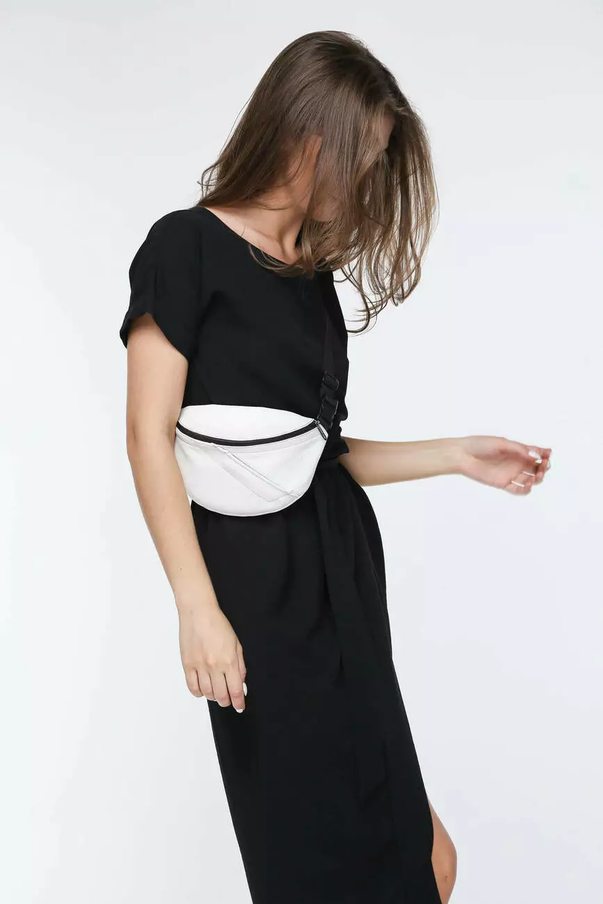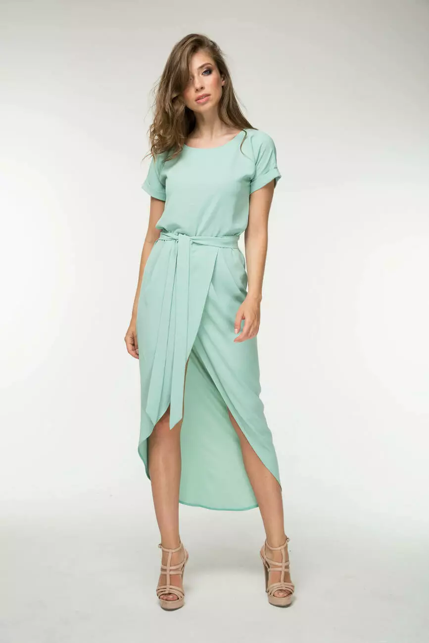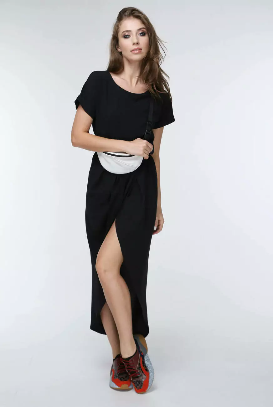 Платье KIRA сочетает в себе шик, деловой стиль и практичность. Верхняя часть выполнена, как футболка с коротким рукавом. Юбка асимметричная с удлиненной задней частью и с разрезом спереди. Пояс подчеркивает линию талии. Ты удивишься, как легко сможешь менять разные стили обуви. Высокий каблук, скромные и практичные лодочки и не менее практичные кроссовки и кеды. Это платье отлично подойдет для любого случая в веренице ежедневных событий.