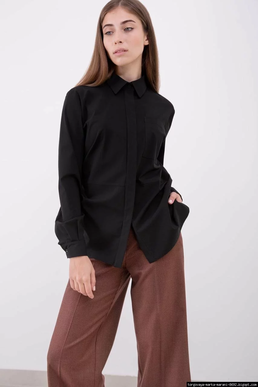 Хлопковая рубашка с асимметричным низом. Длинный рукав на манжете,