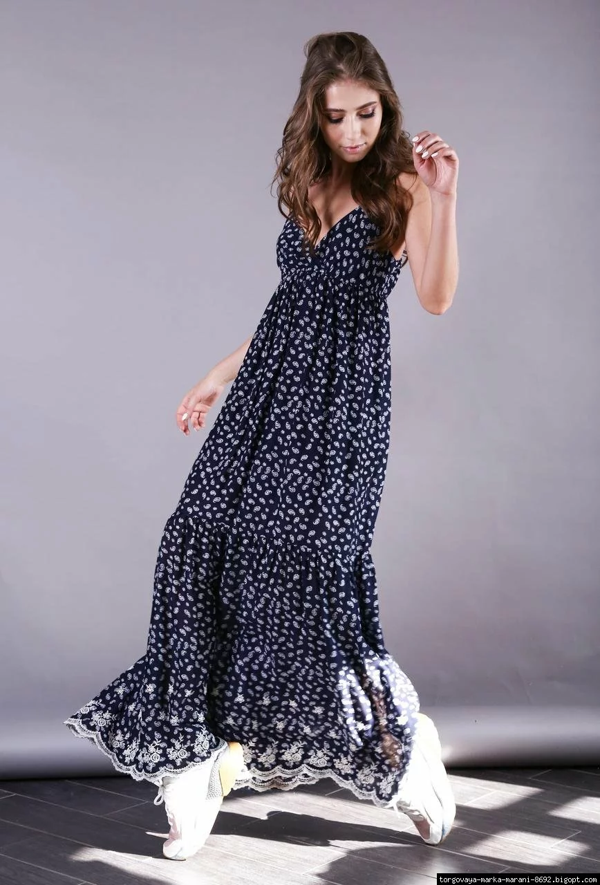Сарафан COUNTRI BLUR выполнен в глубоком темно-синем цвете с