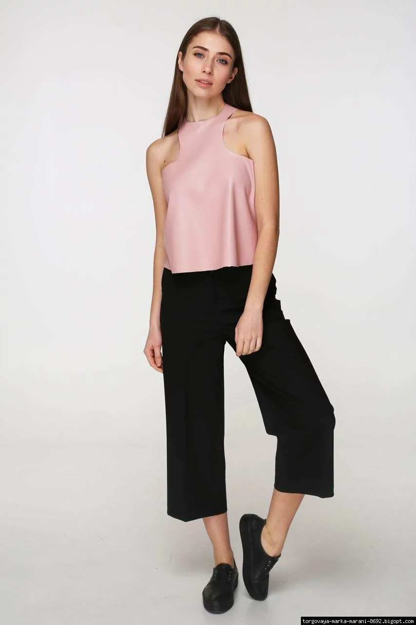 сочетается с брюками-кюлотами, шортами, юбками, туниками и